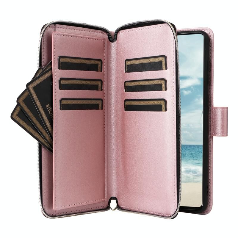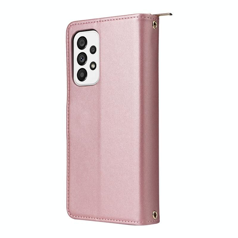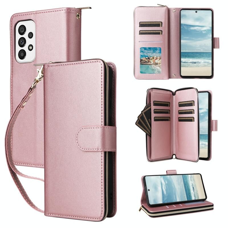 Για Samsung Galaxy A73 5G εννέα-κάρτα Slots φερμουάρ πορτοφόλι τσάντα δερμάτινη θήκη τηλεφώνου (Rose Gold)