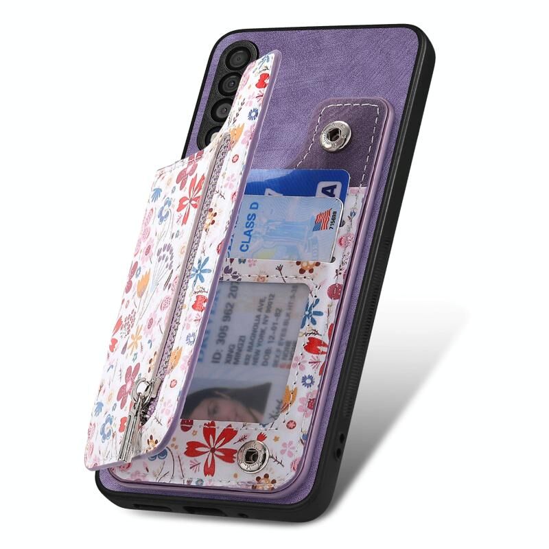 Για Samsung Galaxy A73 5G Ρετρό ζωγραφισμένο φερμουάρ πορτοφόλι πίσω υπόθεση τηλεφώνου (Μωβ)