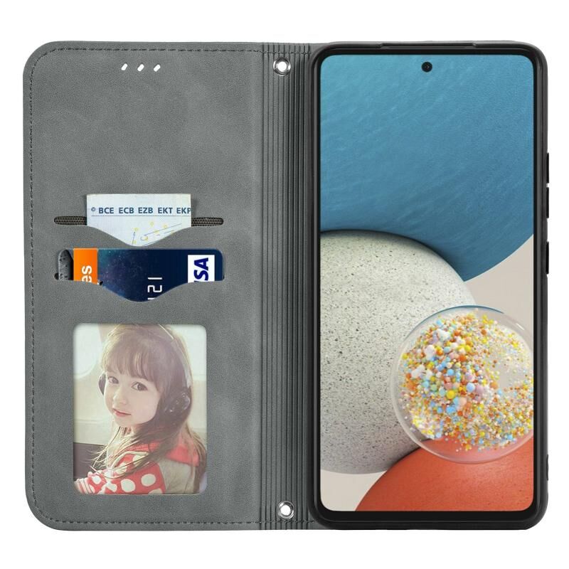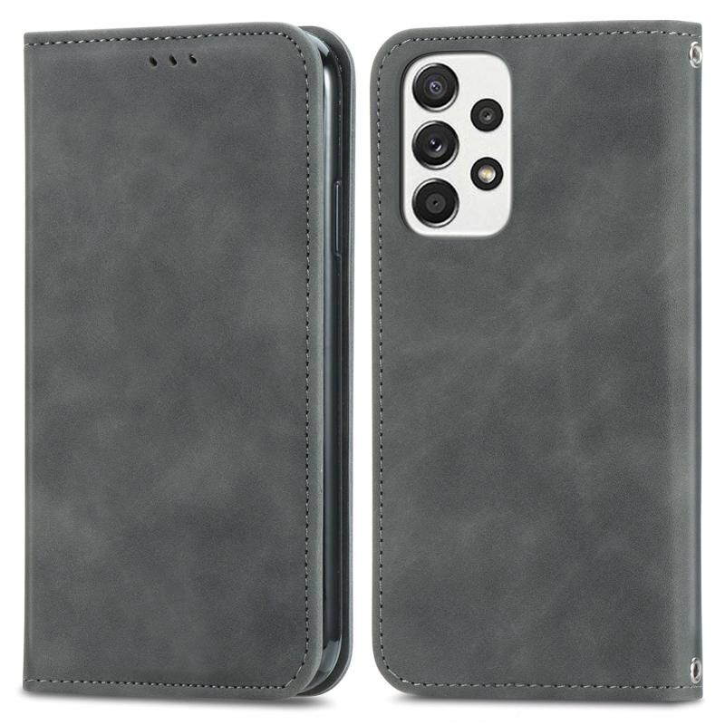 Για Samsung Galaxy A73 5G Retro δέρμα αίσθηση μαγνητική οριζόντια Flip δέρμα τηλέφωνο υπόθεση (Γκρι)