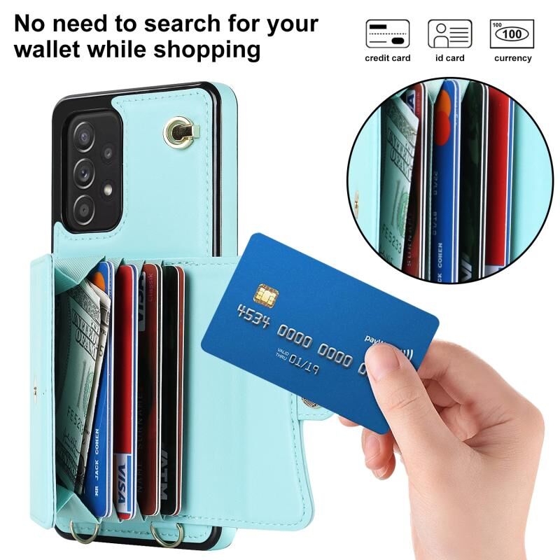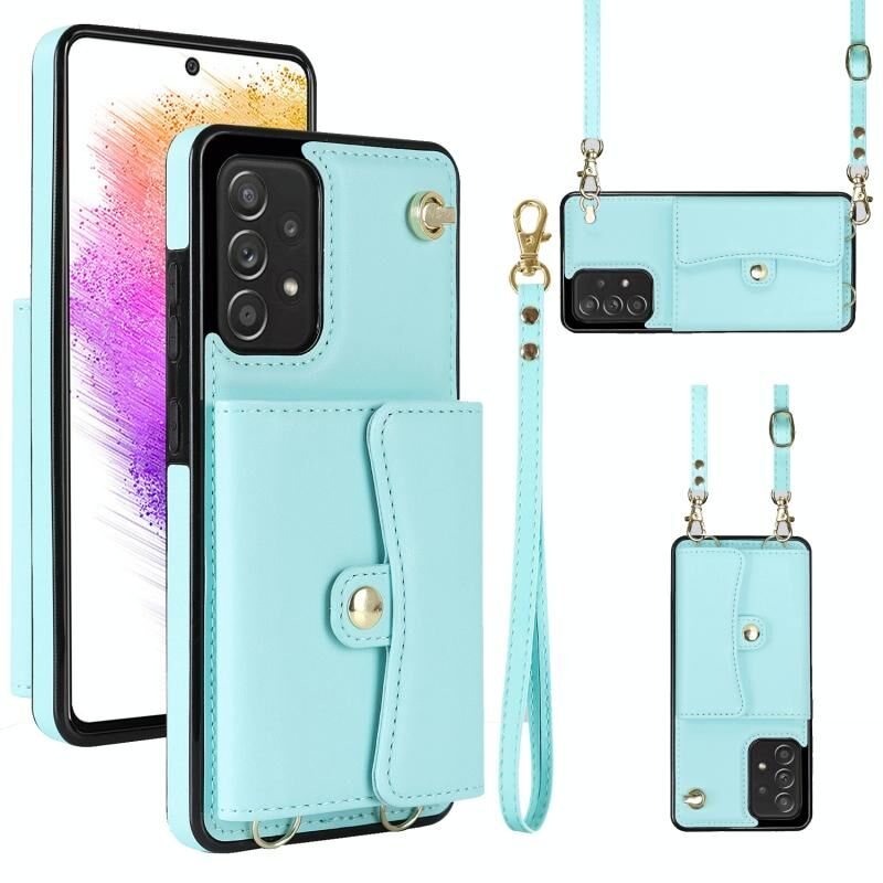 Για Samsung Galaxy A73 5G RFID Slot κάρτα δερμάτινη θήκη τηλεφώνου με μακρύ κορδόνι (πράσινο χρώμα)