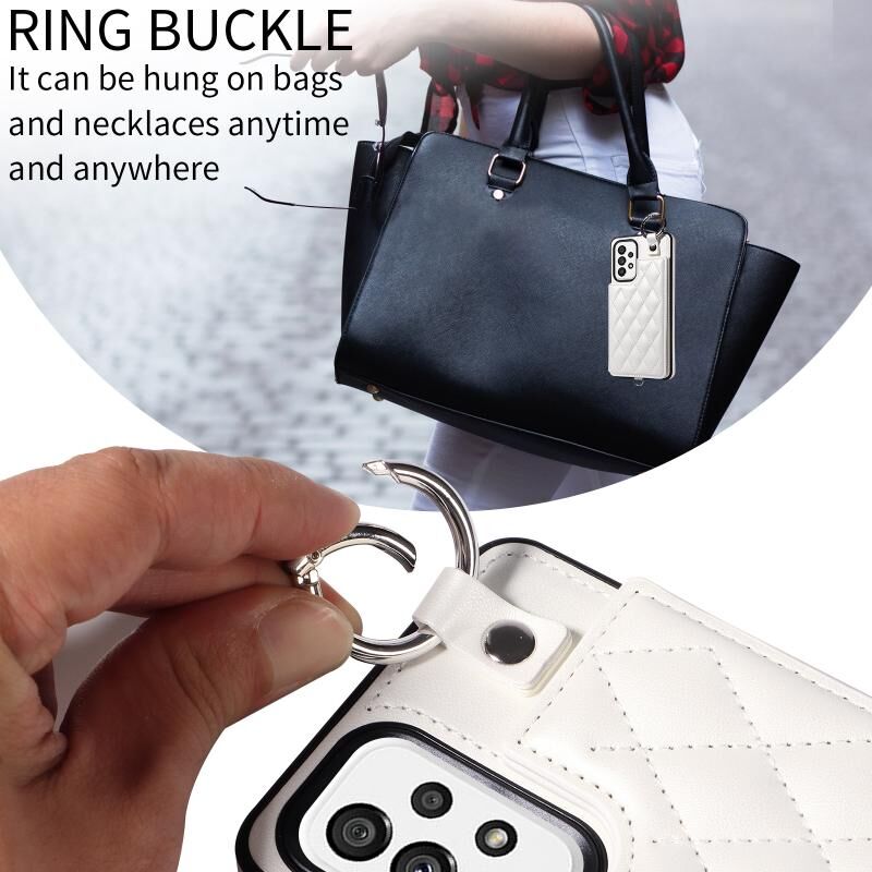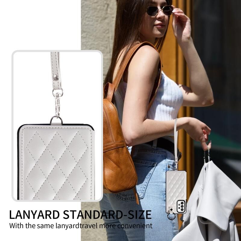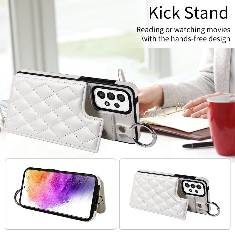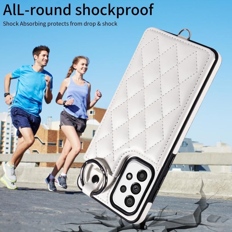 Για Samsung Galaxy A73 5G Rhombic υφή κάρτα τσάντα θήκη τηλεφώνου με σύντομο κορδόνι (λευκό)