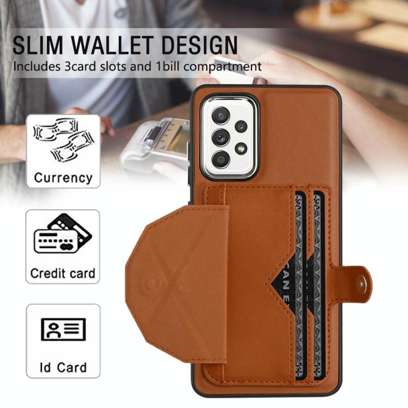 Θήκη κινητού Samsung Galaxy A73 5G από δέρμα, ανθεκτική στις κρούσεις, με θήκη για κάρτες (Καφέ)