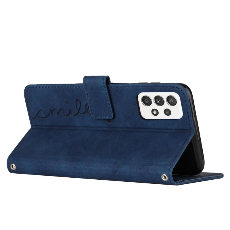 Για Samsung Galaxy A73 5G δέρμα αίσθηση καρδιά μοτίβο δερμάτινη θήκη τηλεφώνου με κορδόνι (Μπλε)