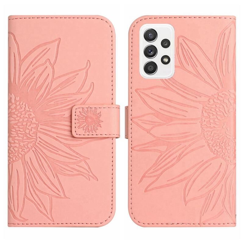 Για το Samsung Galaxy A73 5G δέρμα αίσθηση Sun Flower μοτίβο Flip δέρμα τηλέφωνο υπόθεση με κορδόνι (ροζ)