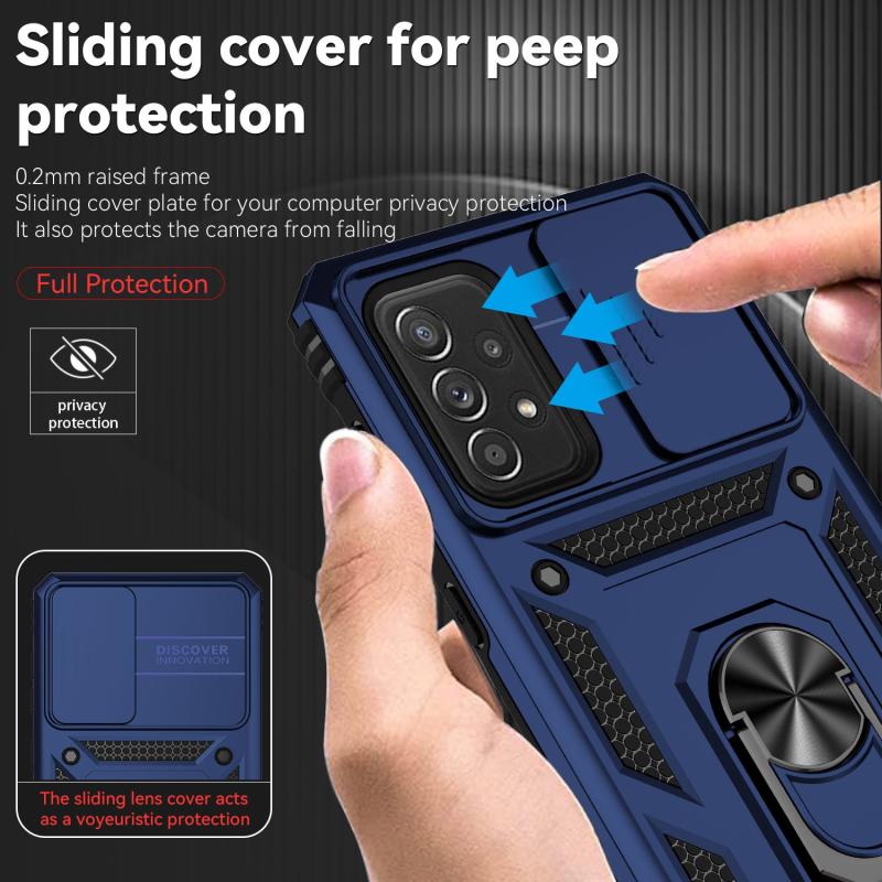 For Samsung Galaxy A73 5G Sliding Camshield Holder Phone Case(Blue)