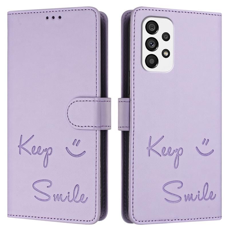 Για Samsung Galaxy A73 5G 5G Χαμόγελο ανάγλυφο RFID δερμάτινη θήκη τηλεφώνου (Light Purple)