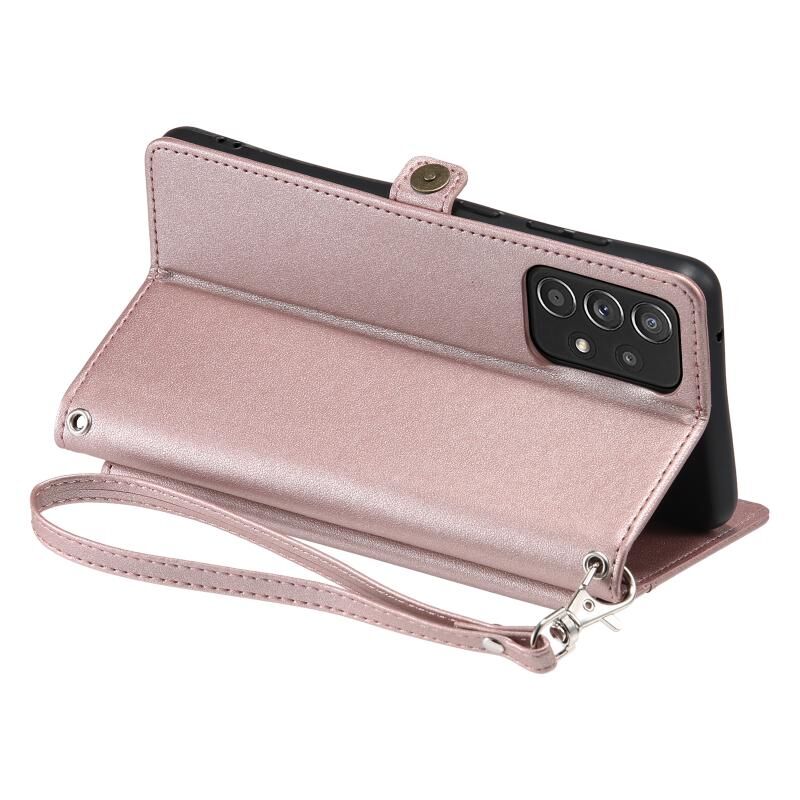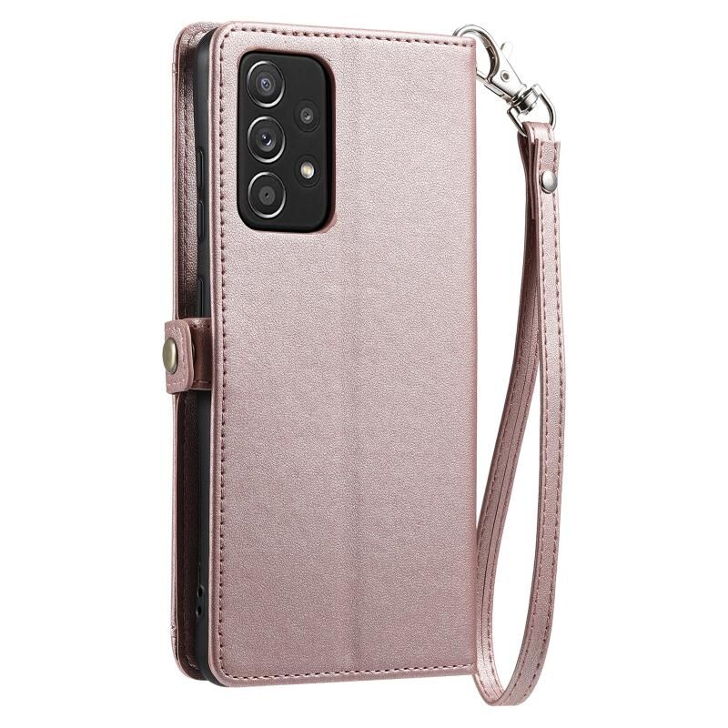 Θήκη τηλεφώνου Samsung Galaxy A73 5G, δερμάτινη, με πολλαπλές θήκες για κάρτες και λουρί (Ροζ χρυσός)