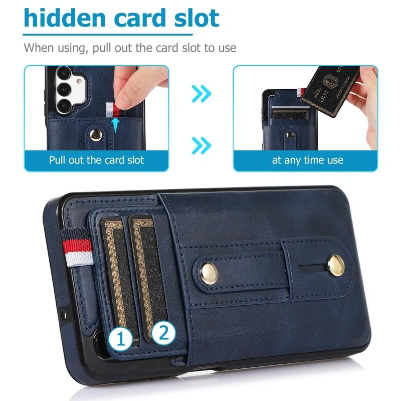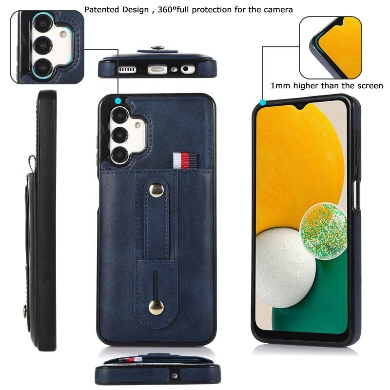 Για Samsung Galaxy A73 5G Wristband Kickstand πορτοφόλι δερμάτινη θήκη τηλεφώνου (μπλε)