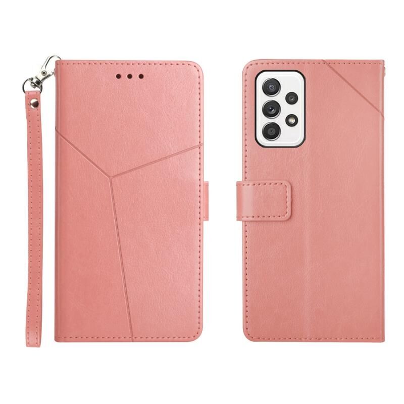 Για Samsung Galaxy A73 5G Y ραφή οριζόντια Flip υπόθεση τηλεφώνου δέρμα (Rose Gold)