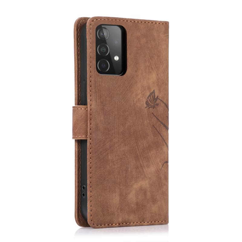 For Samsung Galaxy A73 Orchid Butterfly Embossed Leather Phone Case(Brown)