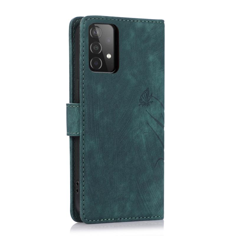For Samsung Galaxy A73 Orchid Butterfly Embossed Leather Phone Case(Green)