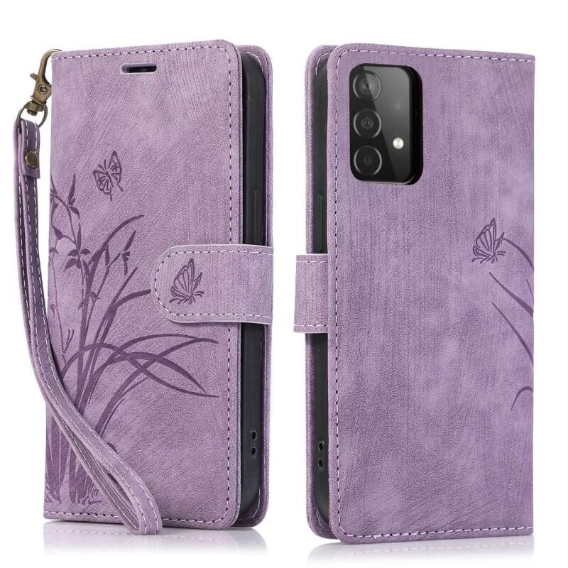 Θήκη τηλεφώνου Samsung Galaxy A73 Orchid Butterfly Embossed Leather (Μαύρο)