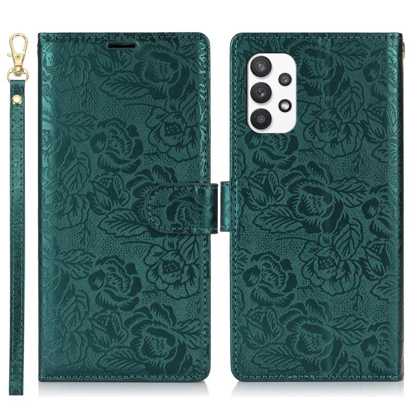 For Samsung Galaxy A73 Peony Flowers Imprint Leather Phone Case(Green)