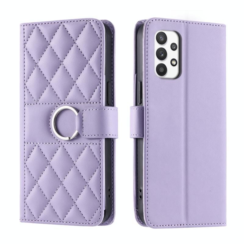 Για Samsung Galaxy A73 δαχτυλίδι πόρπη ρομβοειδή δερμάτινη θήκη τηλεφώνου (Μωβ)