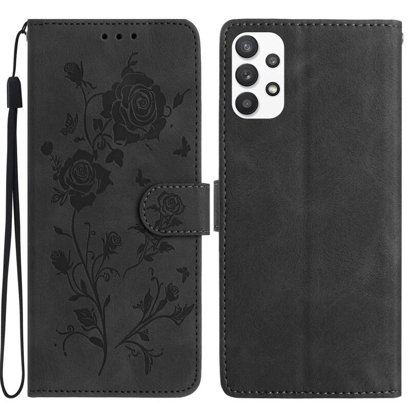 Θήκη τηλεφώνου δερμάτινη με ανάγλυφο σχέδιο ροζ άνθους για Samsung Galaxy A73 (Μαύρο)