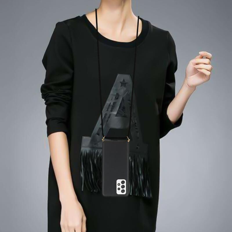 Για Samsung Galaxy A73 Σιτάρι άχυρο υλικό + TPU προστατευτική θήκη με κορδόνι (μαύρο)