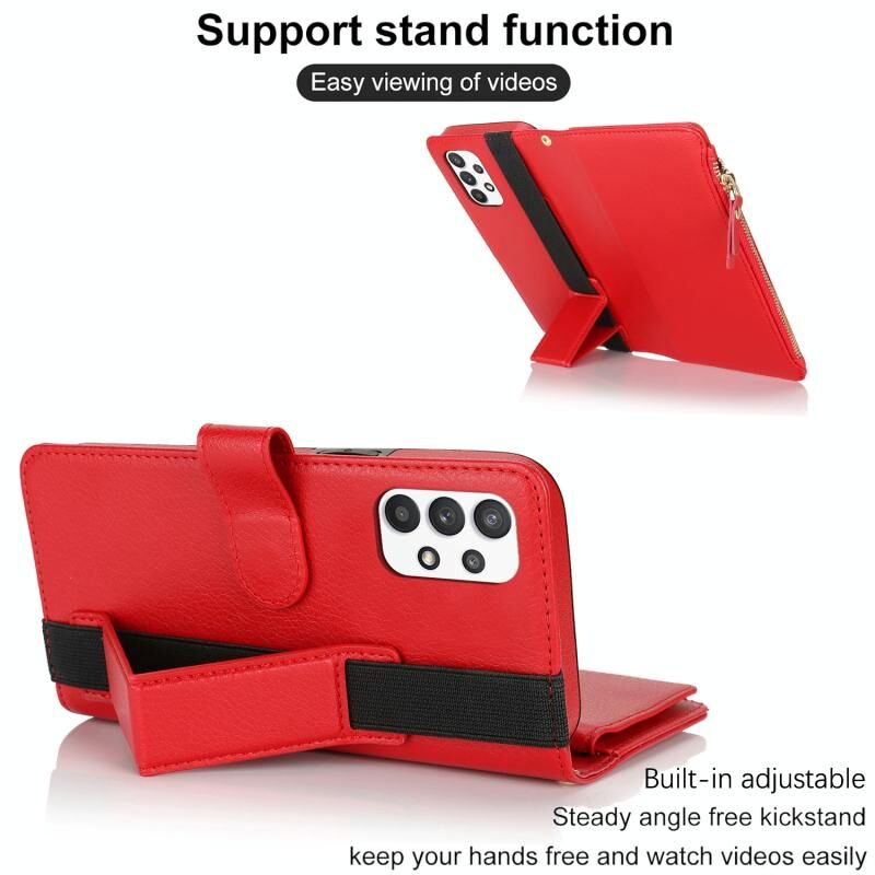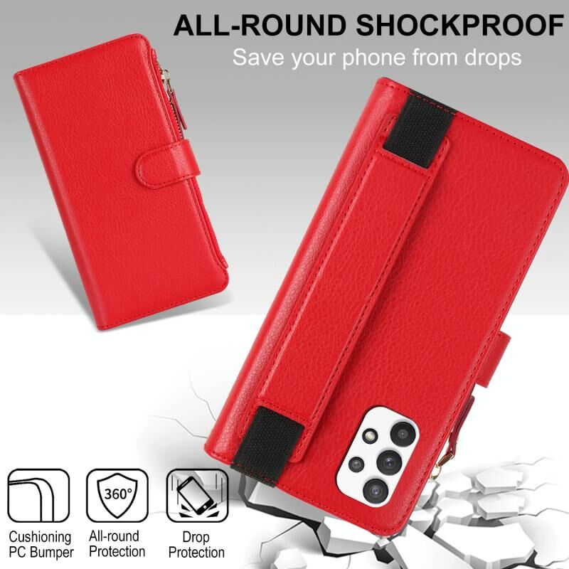 Για Samsung Galaxy A73 Wristband κάτοχος φερμουάρ πορτοφόλι RFID δερμάτινη θήκη τηλεφώνου (κόκκινο)