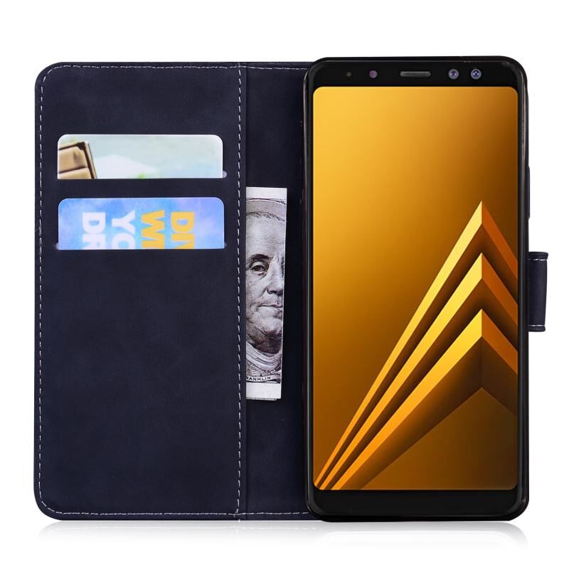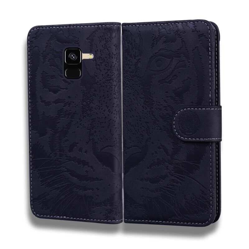 Θήκη δέρματος οριζόντιας αναδίπλωσης με ανάγλυφο μοτίβο τίγρης για Samsung Galaxy A8 (2018) με βάση & υποδοχές καρτών & πορτοφόλι (Μαύρο)