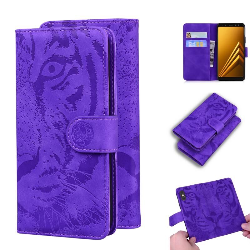 Θήκη δέρματος οριζόντιας αναδίπλωσης με ανάγλυφο μοτίβο τίγρης για Samsung Galaxy A8 (2018) με βάση & υποδοχές καρτών & πορτοφόλι (Καφέ)