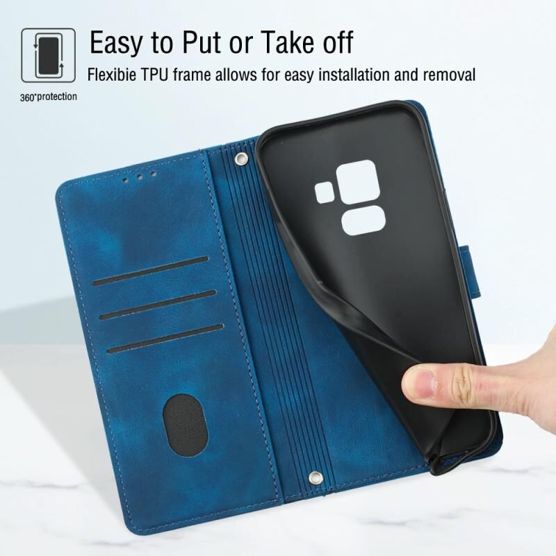 Για Samsung Galaxy A8 / A5 2018 Skin-feel ανάγλυφη δερμάτινη θήκη τηλεφώνου (μπλε)