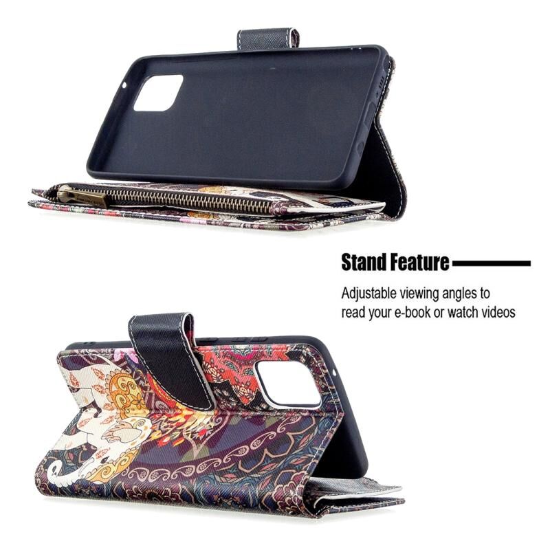 Θήκη Samsung Galaxy A81 με σχέδιο πολύχρωμης ζωγραφικής, οριζόντια, δερμάτινη με φερμουάρ, με βάση & θήκες για κάρτες & πορτοφόλι (Κόκκινο)