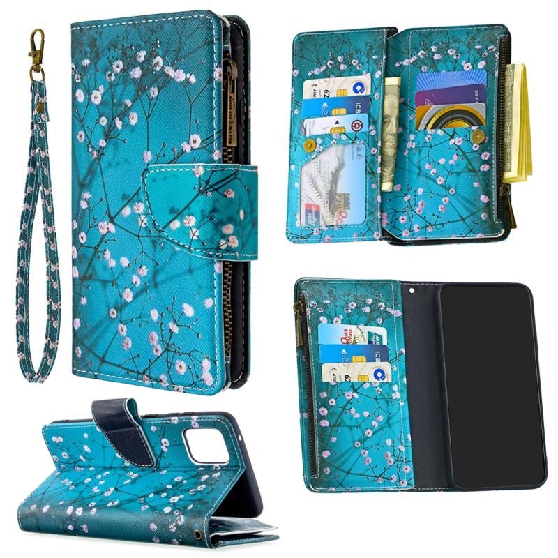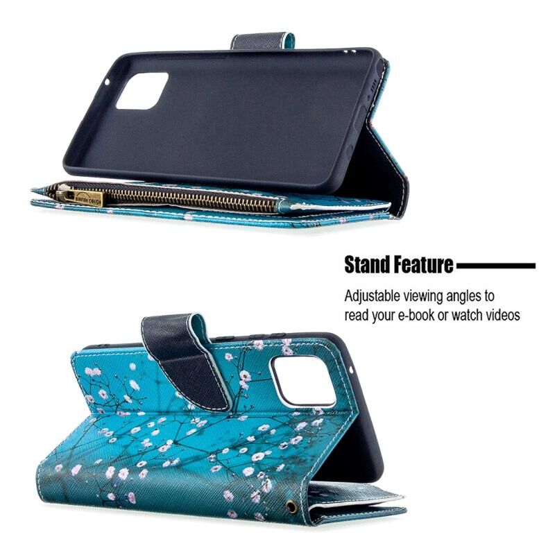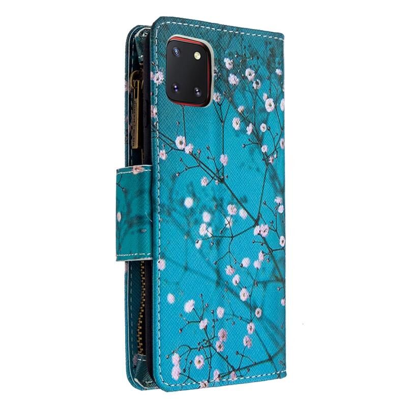 Θήκη Samsung Galaxy A81 με σχέδιο πολύχρωμης ζωγραφικής, οριζόντια, δερμάτινη με φερμουάρ, με βάση & θήκες για κάρτες & πορτοφόλι (Λουλούδι Δαμασκηνιάς)