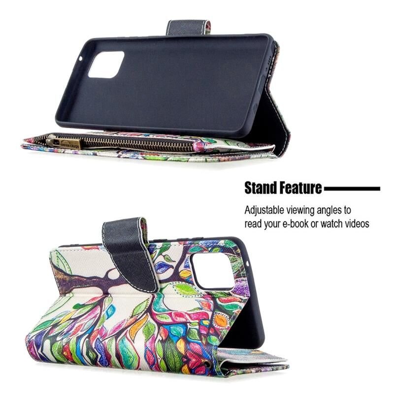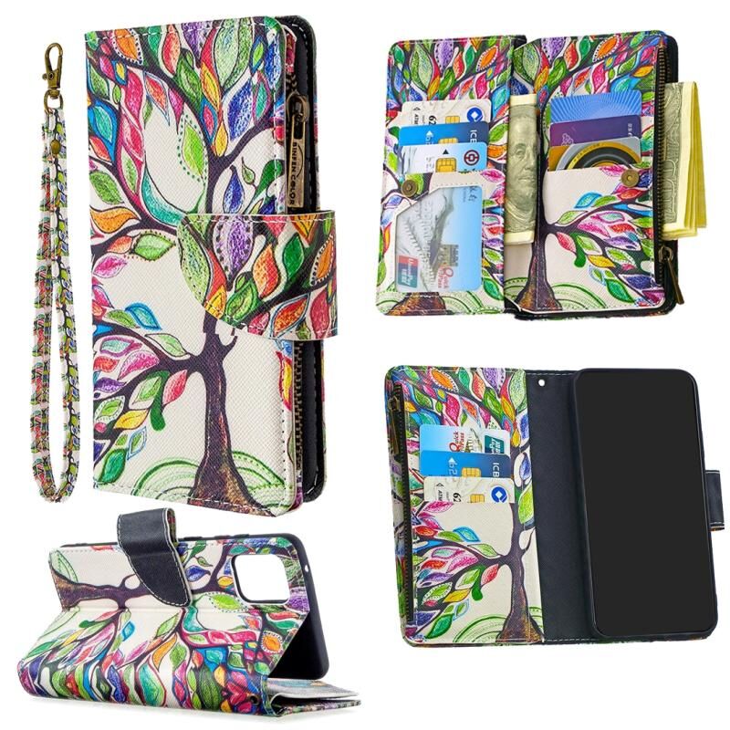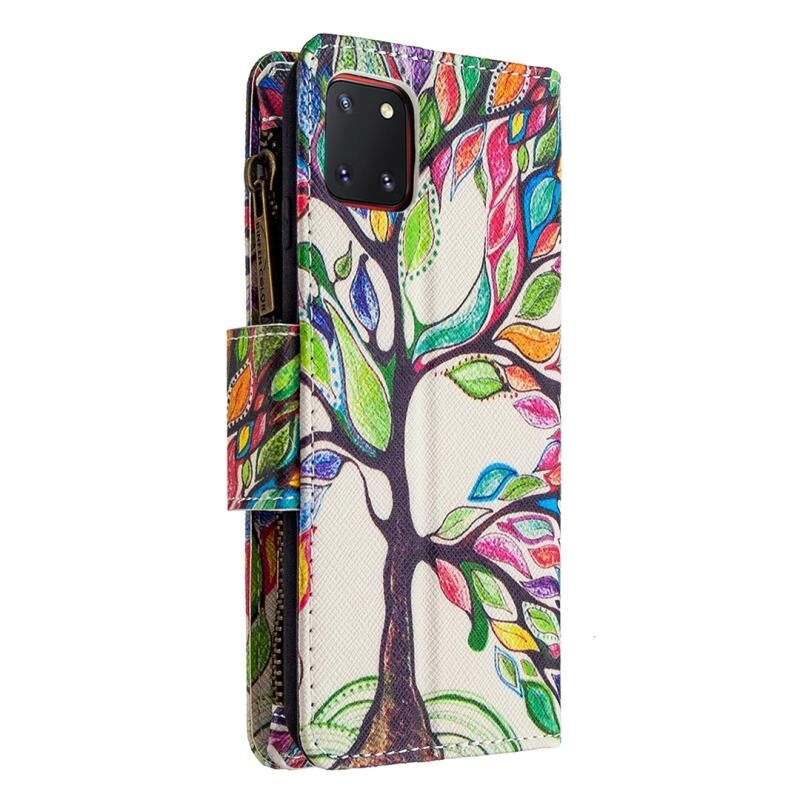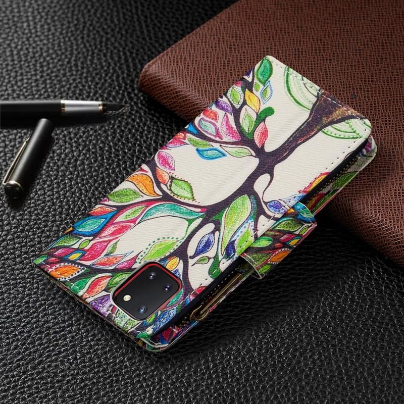 Θήκη Samsung Galaxy A81 με σχέδιο πολύχρωμης ζωγραφικής, οριζόντια, δερμάτινη με φερμουάρ, με βάση & θήκες για κάρτες & πορτοφόλι (Δέντρο)