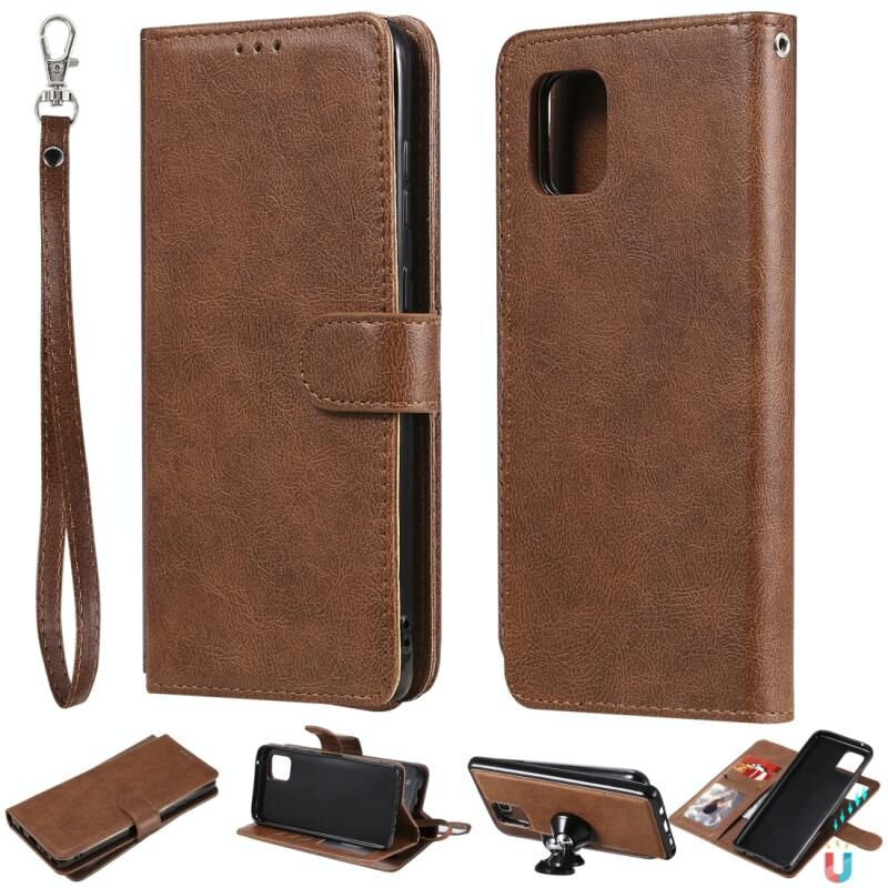 Για Samsung Galaxy A81 / Note 10 Lite 2 σε 1 Αμιγές χρώμα Αποσπώμενη PU δερμάτινη θήκη με υποδοχές για κάρτες & μαγνητική θήκη & κορνίζα φωτογραφιών & πορτοφόλι & λουράκι (καφέ)