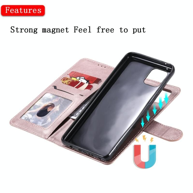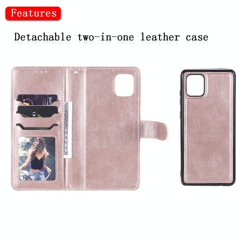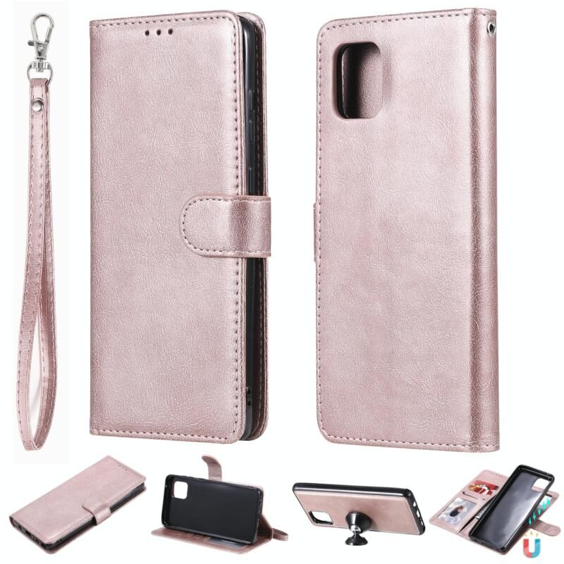 Για Samsung Galaxy A81 / Note 10 Lite 2 σε 1 Αμιγές χρώμα Αποσπώμενη PU δερμάτινη θήκη με υποδοχές για κάρτες & μαγνητική θήκη & κορνίζα φωτογραφιών & πορτοφόλι & λουράκι (ροζ χρυσό)