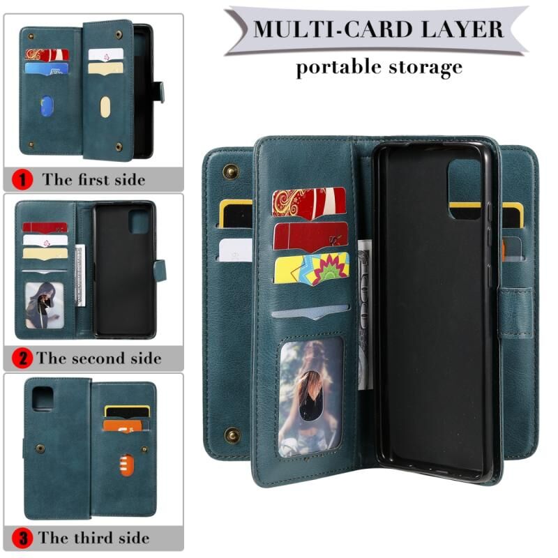 Για Samsung Galaxy A81 / Note 10 Lite Πολυλειτουργική Μαγνητική Θήκη Δερμάτινη Οριζόντια με Αγκράφα Χαλκού σε Μονόχρωμο Σχέδιο με 10 Θήκες Καρτών & Πορτοφόλι & Στήριξη & Κορνίζα Φωτογραφιών (Σκούρο μπλε)