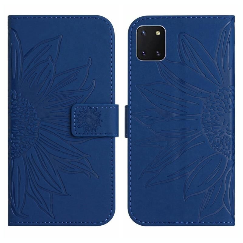 Για το Samsung Galaxy A81/Note10 Lite δέρμα αίσθηση Sun Flower μοτίβο Flip δέρμα τηλέφωνο υπόθεση με κορδόνι (Σκούρο μπλε)