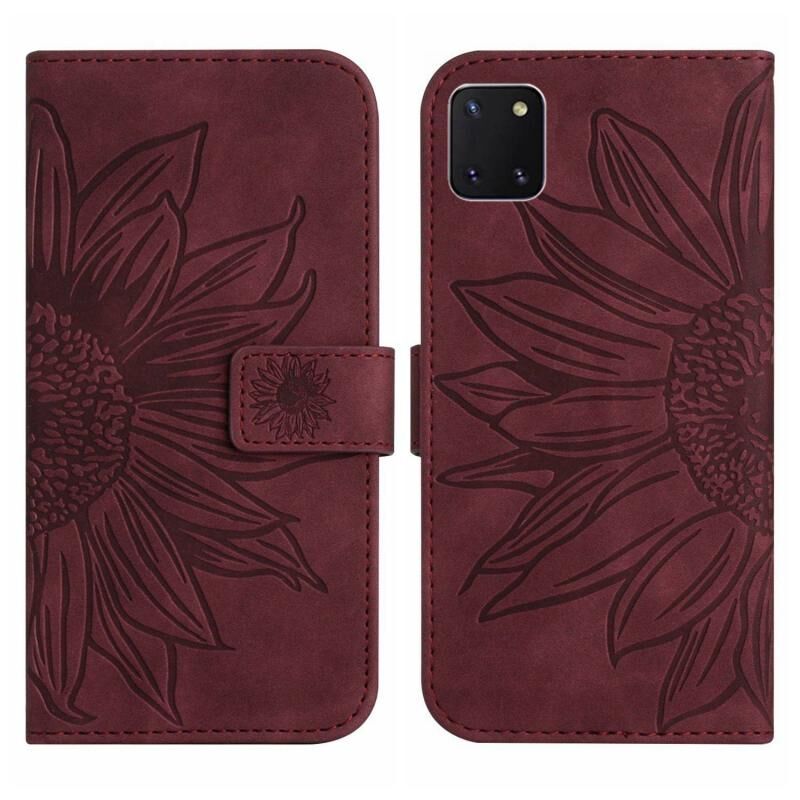 Για το Samsung Galaxy A81/Note10 Lite δέρμα αίσθηση Sun Flower μοτίβο Flip δερμάτινη θήκη τηλεφώνου με κορδόνι (Κρασοκόκκινο)