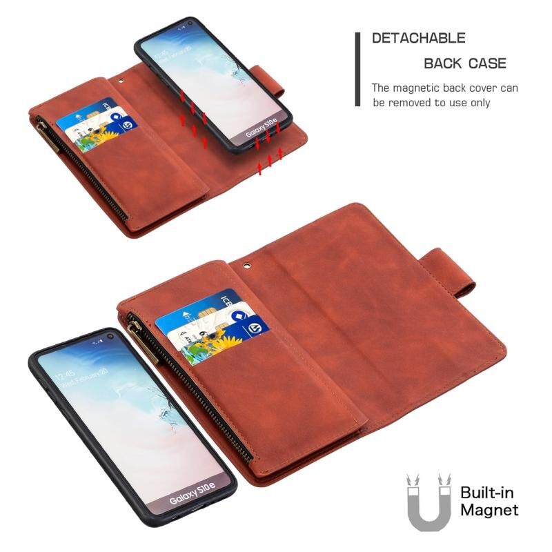 Για το Samsung Galaxy A81 Skin Feel Αποσπώμενη μαγνητική θήκη με φερμουάρ και οριζόντια αναδιπλούμενη PU δερμάτινη θήκη με υποδοχές πολλαπλών καρτών & θήκη & πορτοφόλι & κορνίζα φωτογραφιών & κορδόνι (Καφέ)