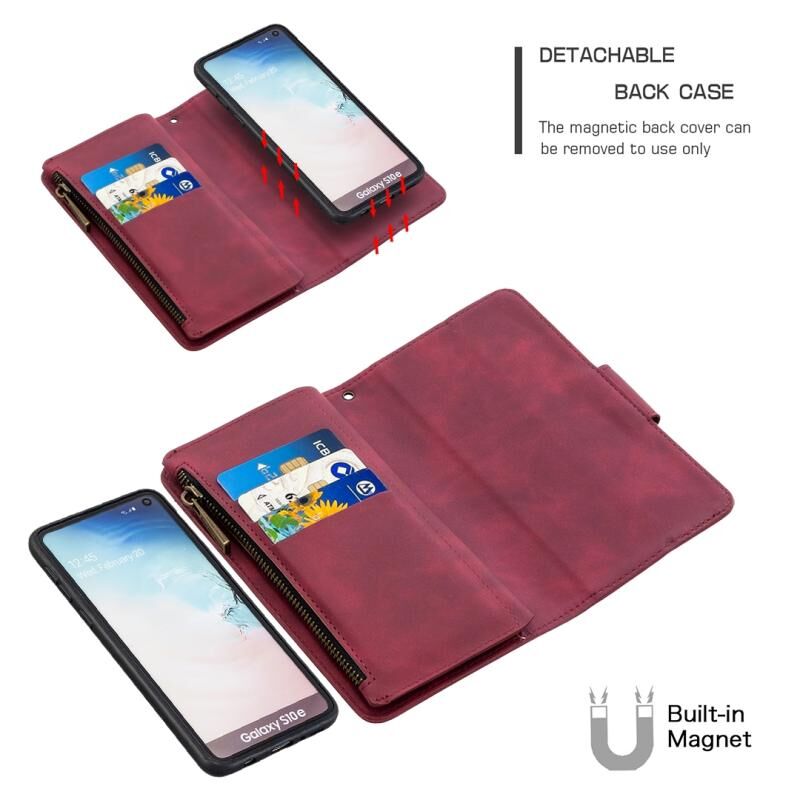 Για το Samsung Galaxy A81 Skin Feel Αποσπώμενη μαγνητική θήκη με φερμουάρ και οριζόντια αναδιπλούμενη PU δερμάτινη θήκη με υποδοχές πολλαπλών καρτών & θήκη & πορτοφόλι & κορνίζα φωτογραφιών & κορδόνι (Κόκκινο)