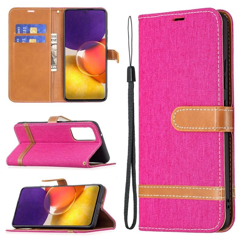 Για Samsung Galaxy A82 5G χρώμα ταιριάζει Denim υφή οριζόντια Flip δερμάτινη θήκη με θήκη & υποδοχές για κάρτες & πορτοφόλι & κορδόνι (Rose Red)