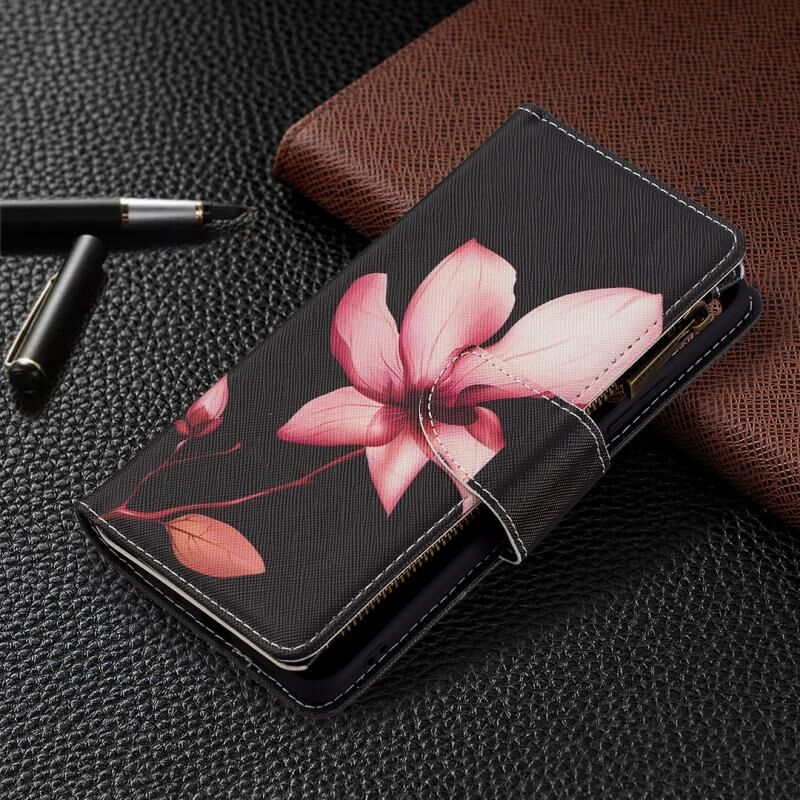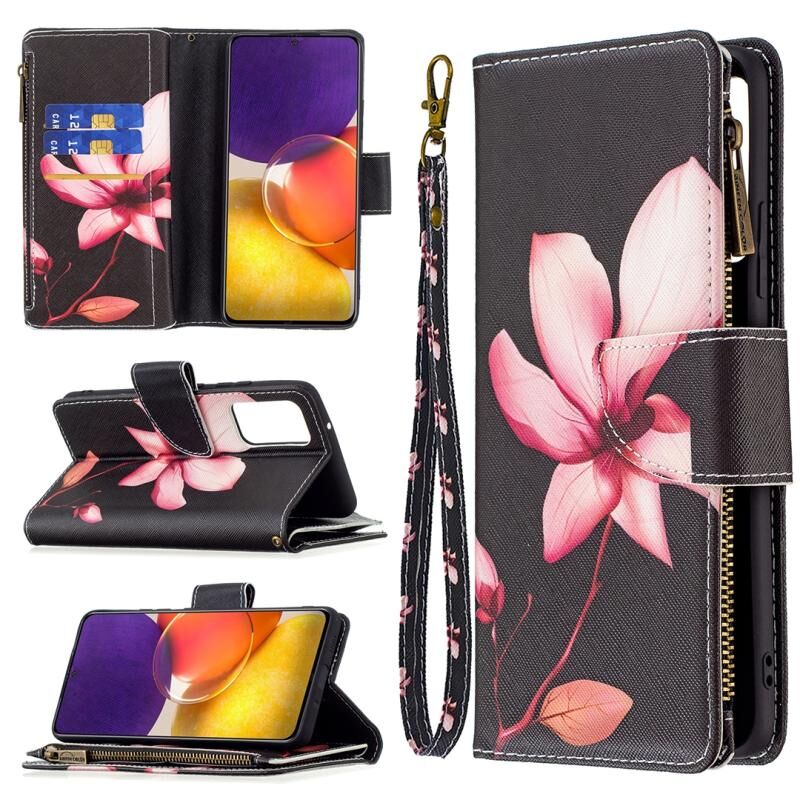 Θήκη Samsung Galaxy A82 5G Δερμάτινη Οριζόντια με Φερμουάρ, Σχέδιο Ζωγραφικής, με Θήκη & Θήκες Καρτών & Πορτοφόλι (Λωτός)