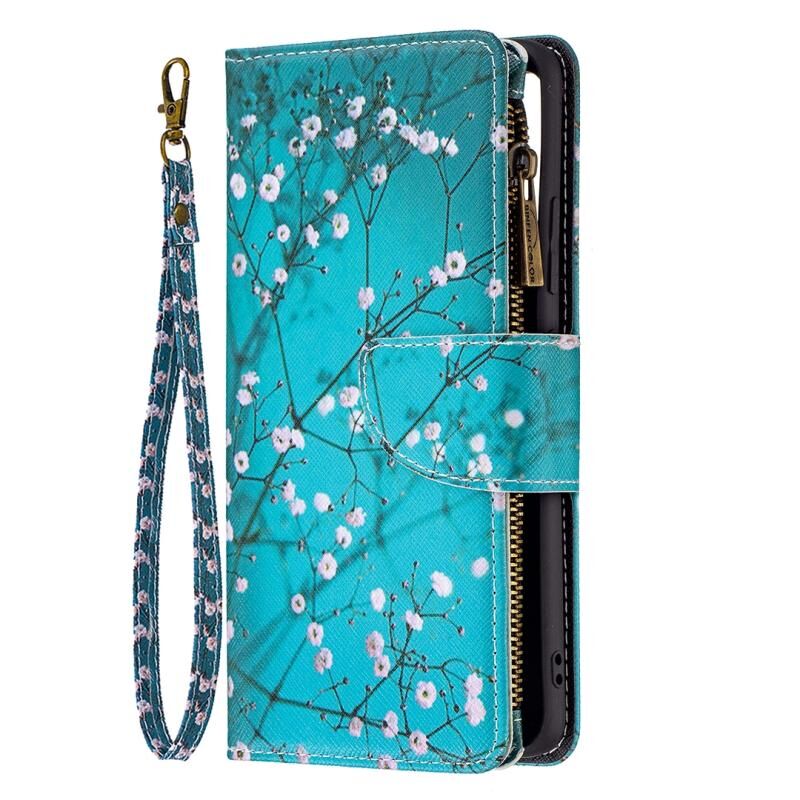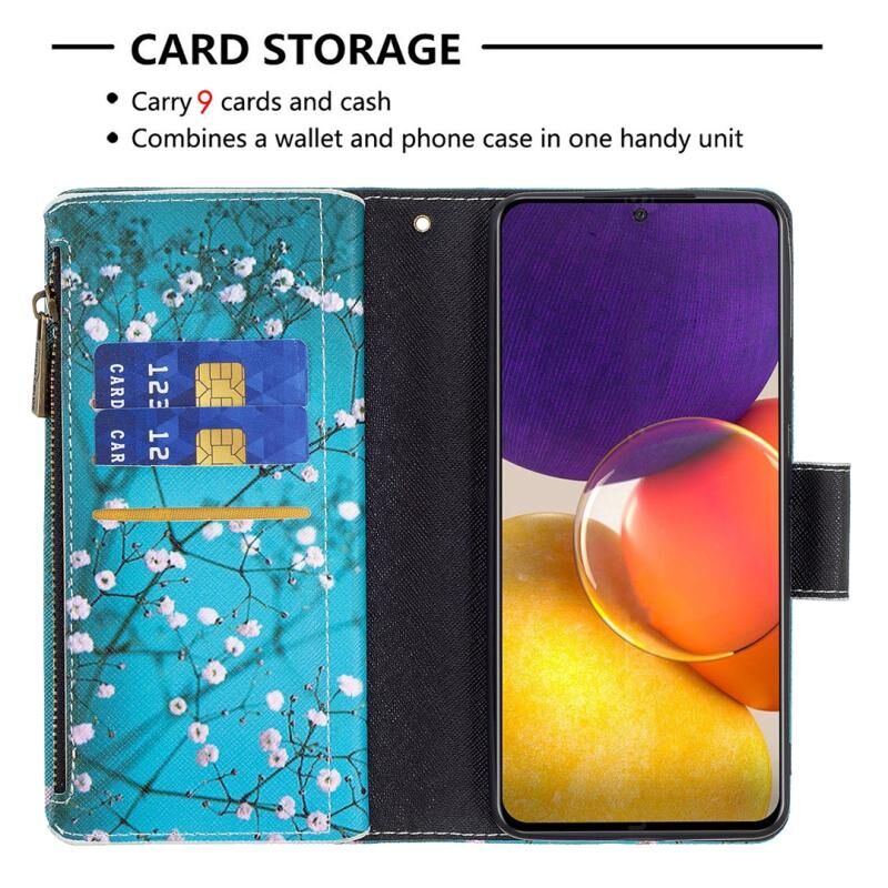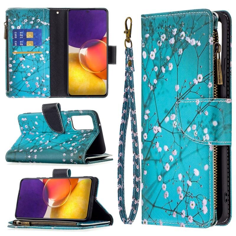 Θήκη Samsung Galaxy A82 5G με σχέδιο ζωγραφικής, χρώματος, οριζόντια αναδιπλούμενη από δέρμα με φερμουάρ, με βάση & υποδοχές καρτών & πορτοφόλι (Λουλούδι Δαμασκηνιάς)