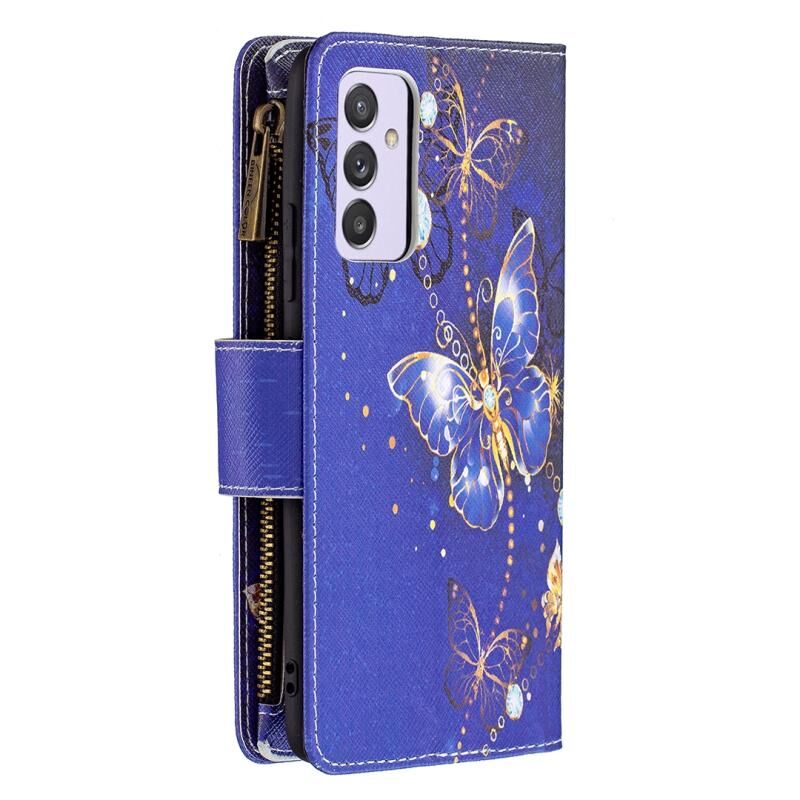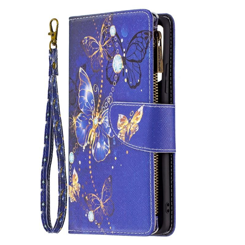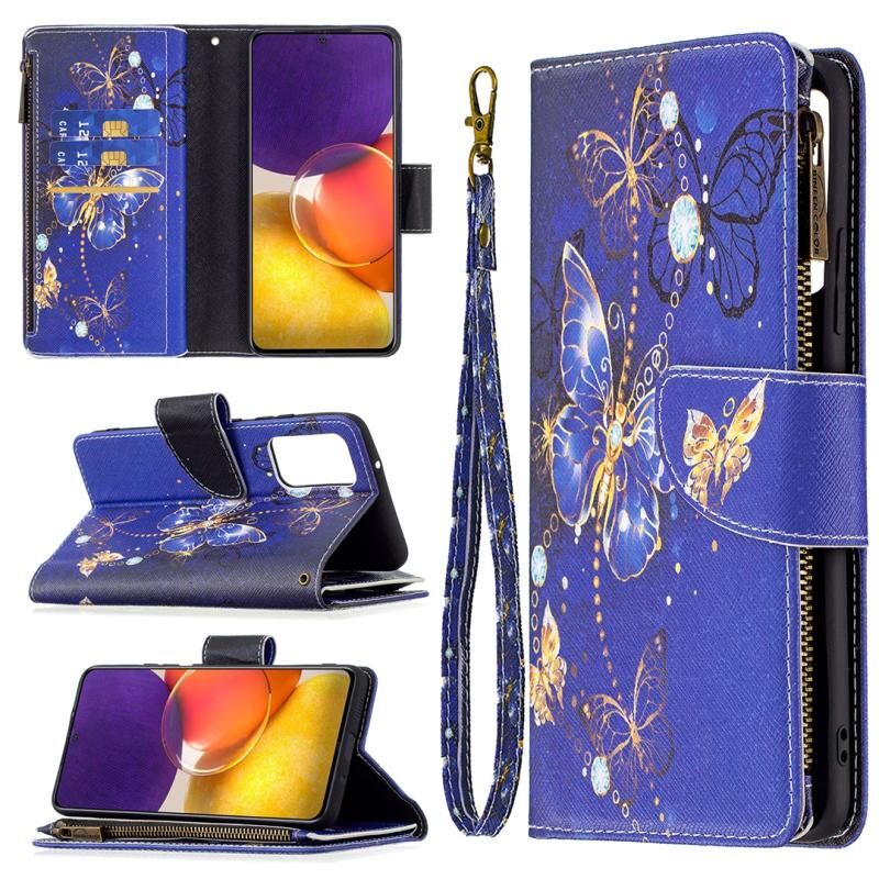 Θήκη Samsung Galaxy A82 5G Δερμάτινη Οριζόντια με Φερμουάρ, Σχέδιο Ζωγραφικής σε Χρώματα, με Θήκη & Θήκες Καρτών & Πορτοφόλι (Χρυσή Πεταλούδα)