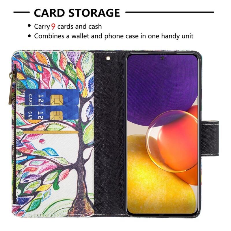 Θήκη Samsung Galaxy A82 5G Δερμάτινη Οριζόντια με Φερμουάρ, Σχέδιο Ζωγραφικής, με Θήκη & Θήκες Καρτών & Πορτοφόλι (Δέντρο)