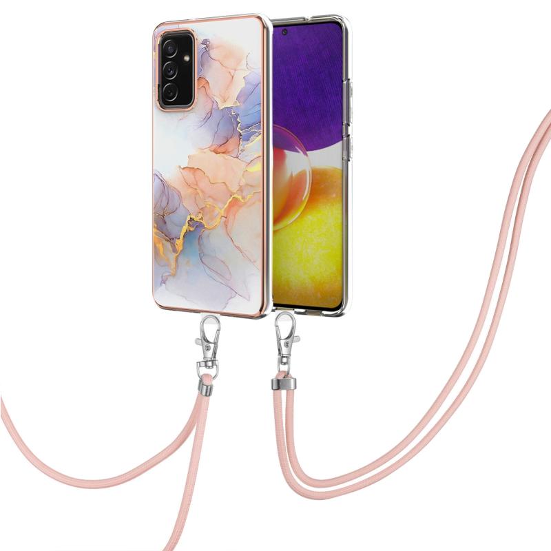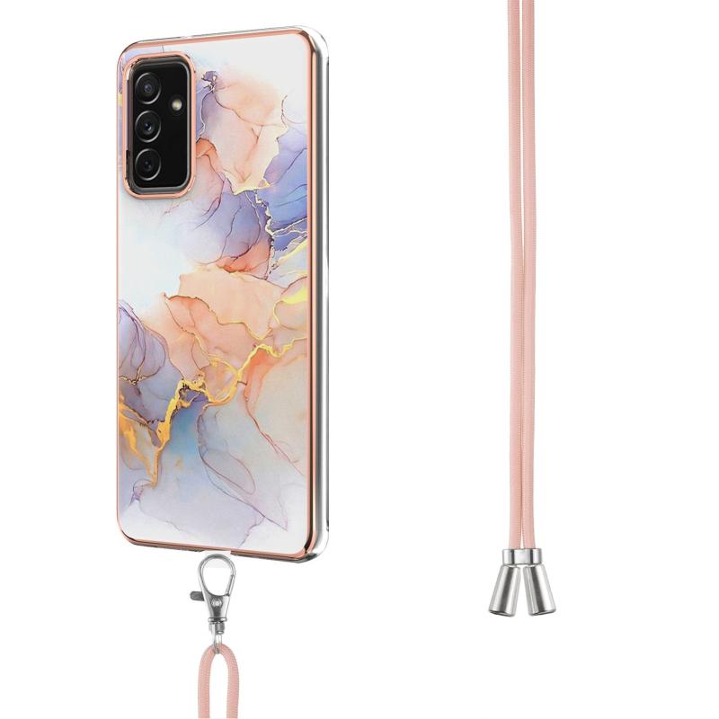For Samsung Galaxy A82 5G Electroplating Pattern IMD TPU Shockproof Case with Neck Lanyard(Milky Way White Marble)