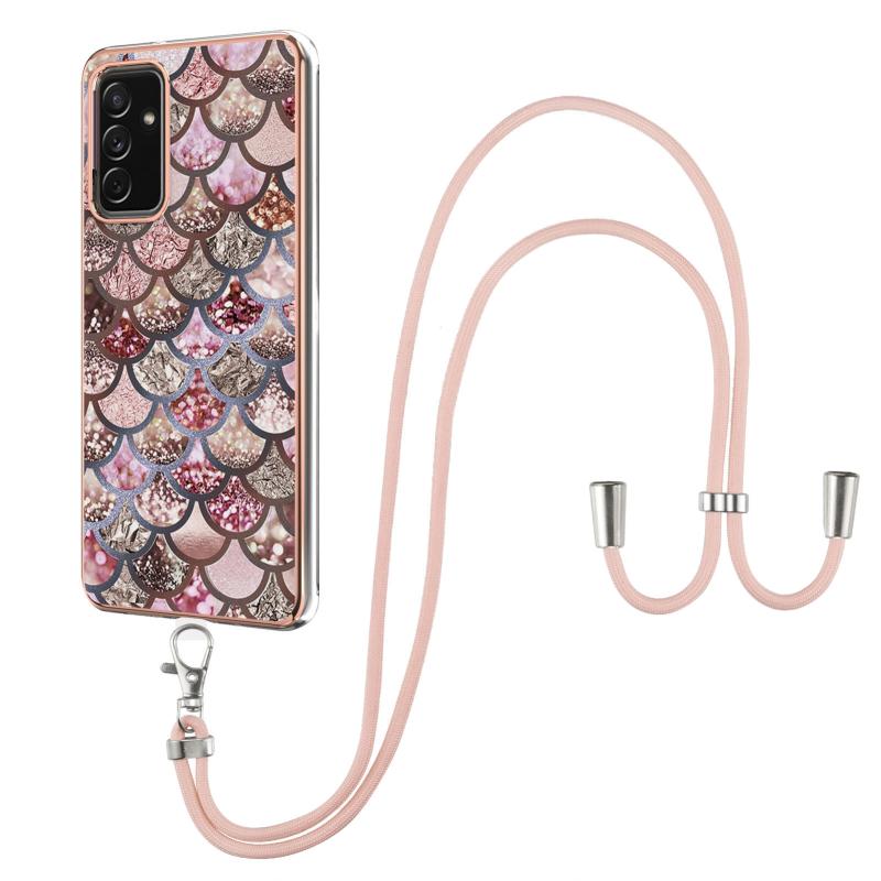 For Samsung Galaxy A82 5G Electroplating Pattern IMD TPU Shockproof Case with Neck Lanyard(Pink Scales)