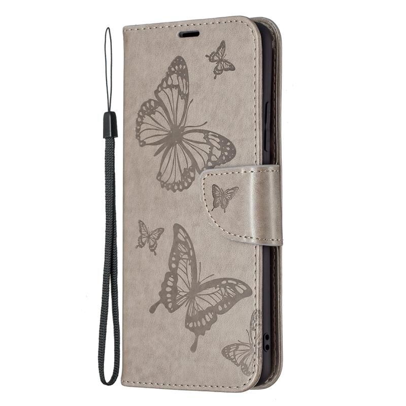 Για Samsung Galaxy A82 5G ανάγλυφο δύο πεταλούδες μοτίβο οριζόντια Flip PU δέρμα υπόθεση με θήκη & υποδοχή κάρτας & πορτοφόλι & Lanyard (γκρι)