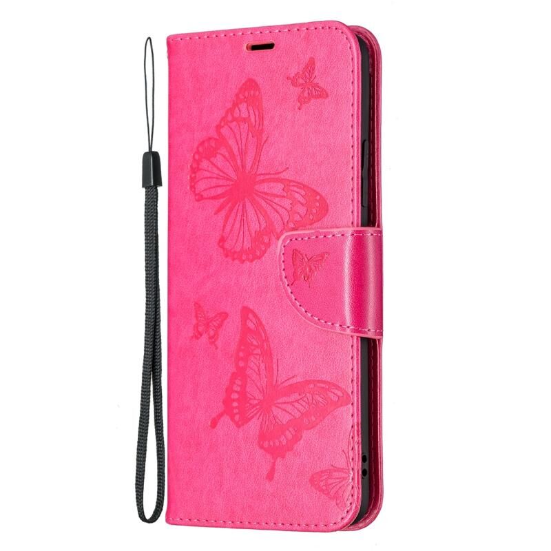 Για Samsung Galaxy A82 5G ανάγλυφο δύο πεταλούδες μοτίβο οριζόντια Flip PU δέρμα υπόθεση με θήκη & υποδοχή για κάρτες & πορτοφόλι & κορδόνι (Rose Red)
