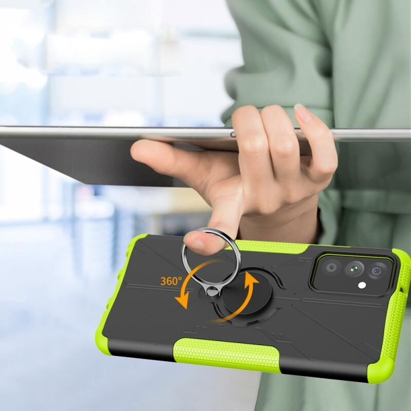 Για το Samsung Galaxy A82 5G Machine Armor Bear Shockproof PC + TPU προστατευτική θήκη με κάτοχο δαχτυλίδι (Ροζέ κόκκινο)