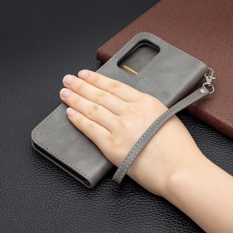 Για Samsung Galaxy A82 5G Retro Lambskin υφή καθαρό χρώμα οριζόντια Flip PU δέρμα υπόθεση με θήκη & υποδοχές για κάρτες & πορτοφόλι & κορδόνι (γκρι)