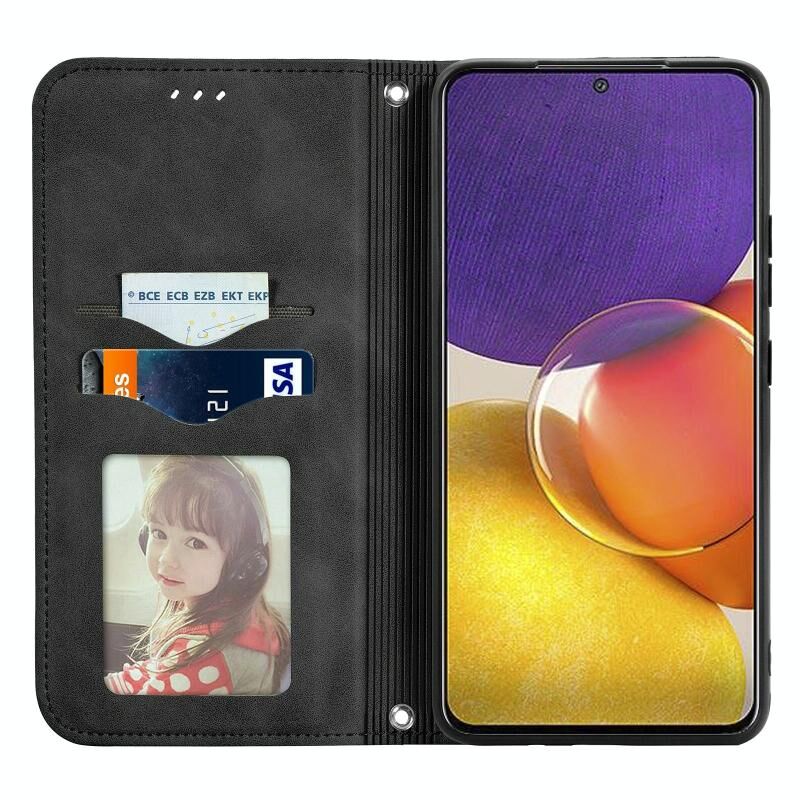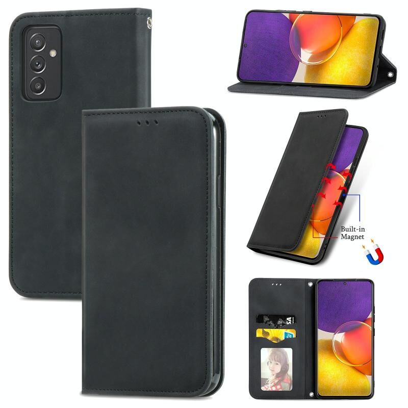 Για Samsung Galaxy A82 5G Retro Skin Feel Business Μαγνητική οριζόντια Flip δερμάτινη θήκη με υποδοχές για κάρτες & πορτοφόλι & κορνίζα φωτογραφιών (Μαύρο)