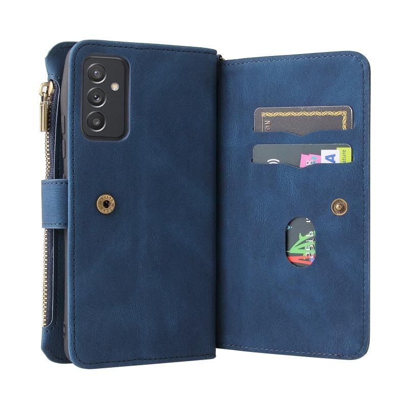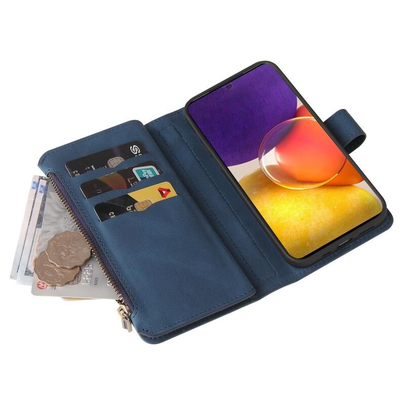 Για Samsung Galaxy A82 5G δέρμα αίσθηση PU + TPU οριζόντια Flip δερμάτινη θήκη με υποδοχή & 15 κάρτες Slot & πορτοφόλι & φερμουάρ τσέπη & Lanyard (μπλε)