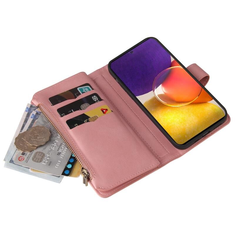 Για Samsung Galaxy A82 5G δέρμα αίσθηση PU + TPU οριζόντια Flip δερμάτινη θήκη με υποδοχή & 15 κάρτες Slot & πορτοφόλι & φερμουάρ τσέπη & Lanyard (ροζ)
