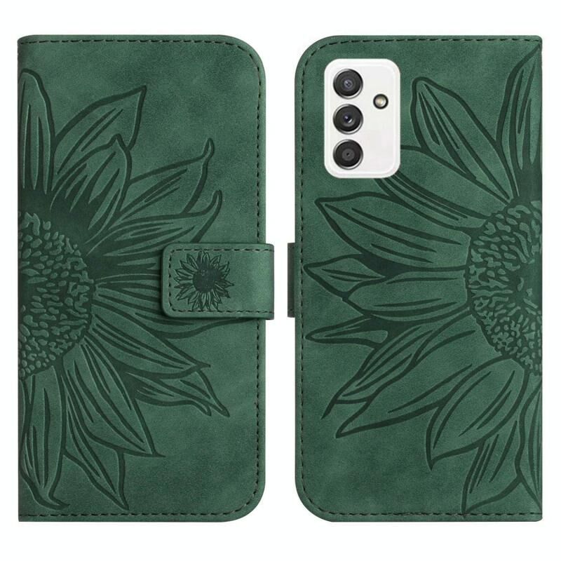 Για το Samsung Galaxy A82 5G δέρμα αίσθηση Sun Flower μοτίβο Flip δέρμα τηλέφωνο υπόθεση με κορδόνι (πράσινο)