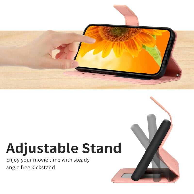 Για το Samsung Galaxy A82 5G δέρμα αίσθηση Sun Flower μοτίβο Flip δέρμα τηλέφωνο υπόθεση με κορδόνι (ροζ)